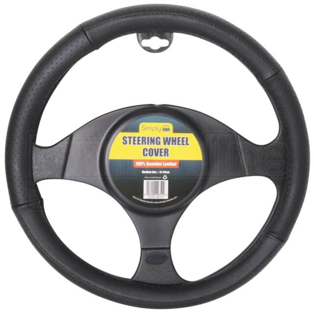 Black 100% Genuine Leather Steering Wheel Cover- 39-41 Cm
