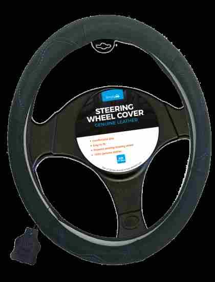 Black/blue 100% Genuine Leather Steering Wheel Cover- Medium Size 37-3