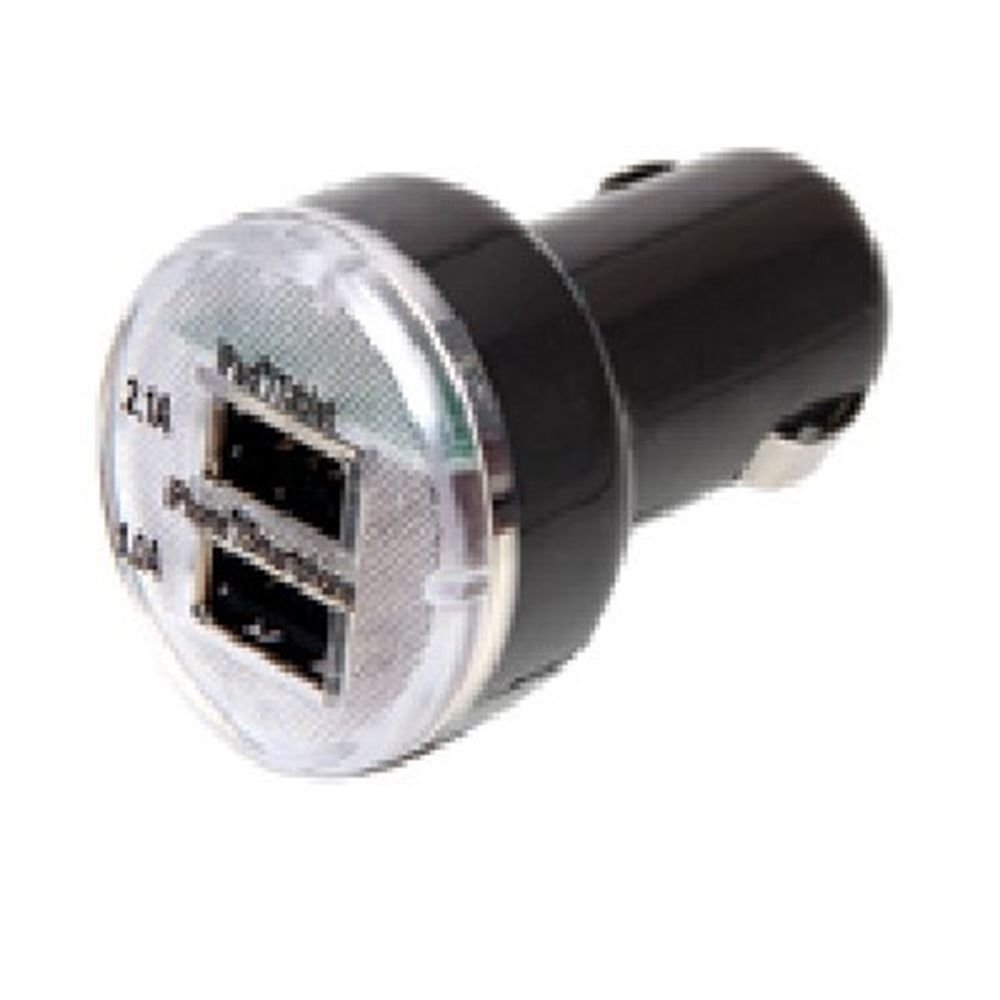 12/24V Twin USB Tablet & Smartphone Charger Short Circuit & Thermals Shutdown Protection Suitable for all standard USB charger cables LED power indicator 2.1A USB port for IPad, tablets, IPhones & Smartphone 1.0A USB port IPhones & Smartphone Suitable for use in cars, vans, or trucks with 12v or 24v power sockets Simply plug into the 12v or 24v power socket and connect the device using a standard USB cable for the device to be powered/charged Barcode: 5026637628856 Ctn Qty: 100