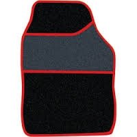 4 Piece Velour Carpet Mat Set Black with Red Binding By using these mats you will prolong the life of your vehicles carpet whilst transforming the look of your vehicles interior Set Includes 2 front mats & 2 back mats with hard wearing heel pad Universal fit which means they will fit most cars Anti-slip backing to prevent the mats moving Easy to fit and clean Barcode: 5026637022050 Ctn Qty: 12