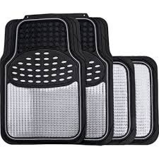 4 Piece Heavy Duty Revelation Metallic Style Mat Set in Black & Chrome By using these mats you will prolong the life of your vehicles carpet whilst transforming the look of your vehicles interior Set Includes 2 front mats & 2 back mats Universal fit which means they will fit most cars Anti-slip backing to prevent the mats moving Easy to fit and easy to clean just wipe with a damp cloth Barcode: 5026637605147 Ctn Qty: 4