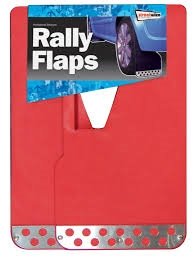 Rally style mud flaps Pair Red With Chrome plate Protects the vehicle, passengers, other vehicles, and pedestrians from mud and other flying debris thrown into the air by the rotating tyre Barcode: 5026637611766 Ctn Qty: 20